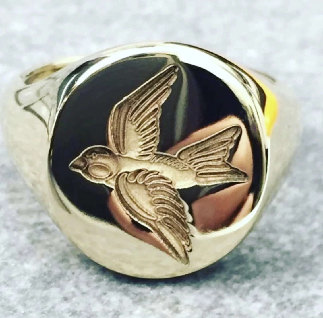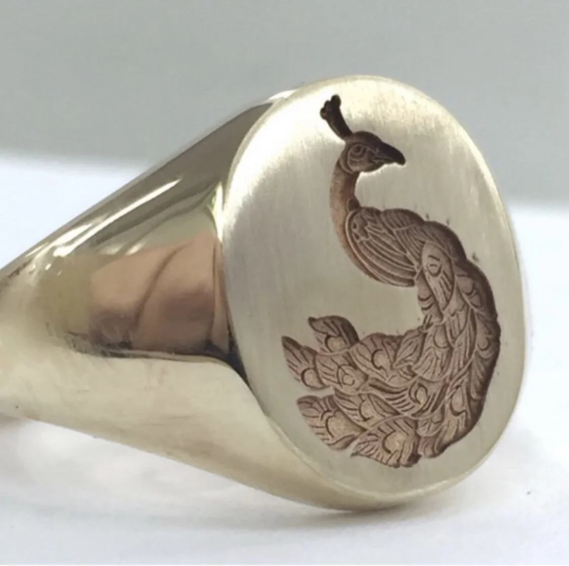 Custom logos, drawings and designs can be engraved on the signet ring for a totally one-of-a-kind piece. We can work from your digital files or sketches.