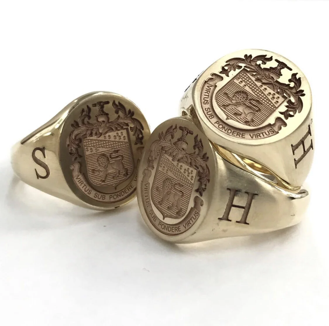 Visual 2D engravings of heraldic motifs such as family crests or a coat of arms. Any size signet table is accepted, we will alter the motif to engrave accordingly.